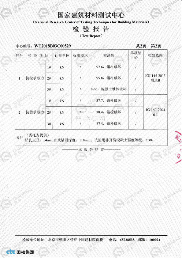 表格未列出的產品,請參照《JGJ145-2013混凝土結構後錨固技術規程》按照承載力極限狀態計算方(fāng)式得出(chū)相應數據,具(jù)體方案請谘詢施邦 (上海) 實業有(yǒu)限公司技術部