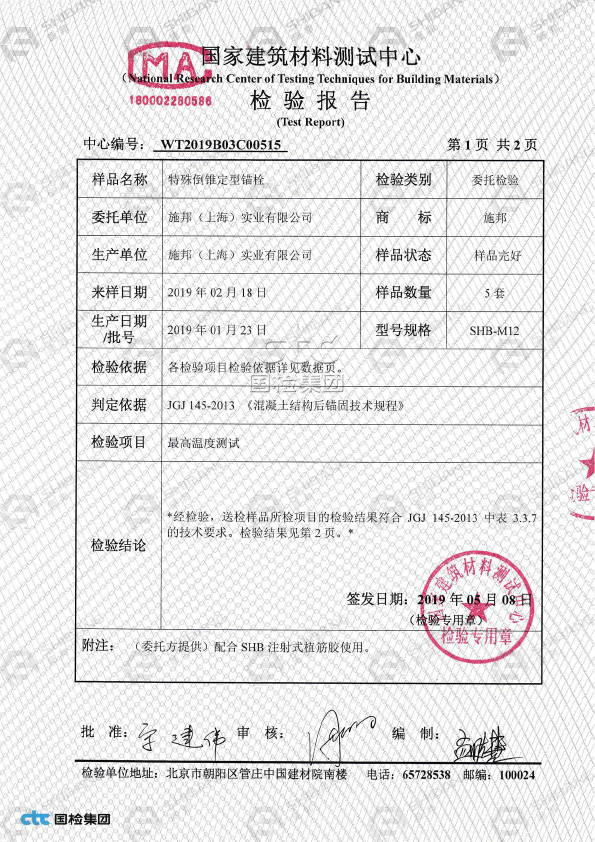 產品不僅通過了《我國建築材料測試中心(xīn)》檢測