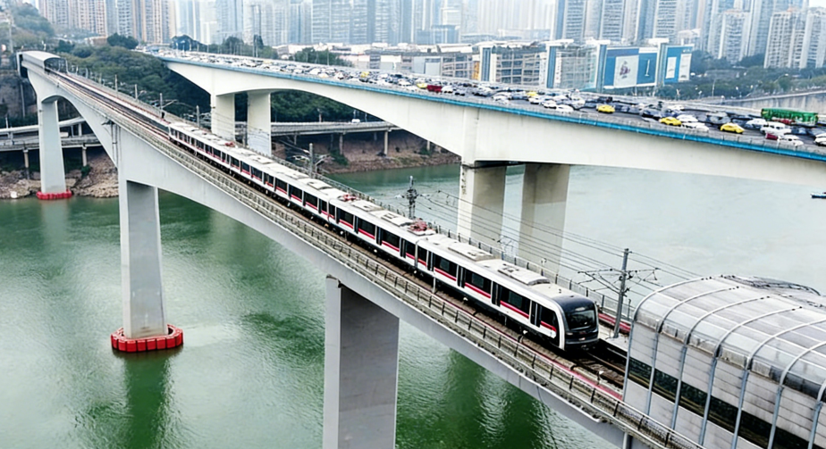 作為重慶首個采用PPP模式建設的軌道交通項目,9號線一期創下多個紀錄。紅岩村站141米的垂(chuí)直深度使其成為全國最深的地鐵站之(zhī)一,並且在2025年(nián)10月獲得了國(guó)際隧道與地下空間協會頒發的全球隧道界"奧斯卡(kǎ)"金獎。此外,嘉華軌道專用橋以252米連續鋼構設計的主跨,刷新了國內同類橋梁的紀錄。這一條中(zhōng)國建築承建的重慶中心城區軌道交通骨幹線路,為重慶再添一條跨(kuà)江通道,並再現了軌道列車穿樓的壯觀景象。