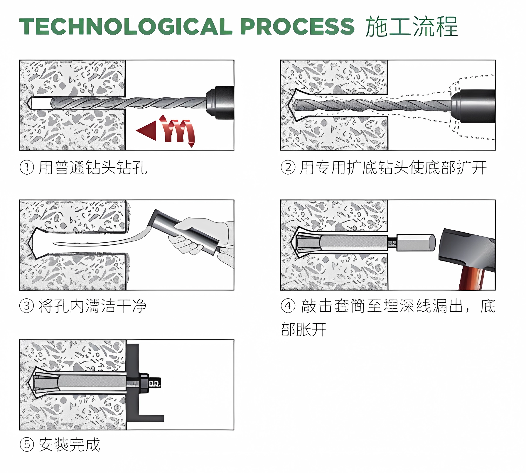 顧名思義,即是通過機械原理來達到其錨固(gù)效果。是無需依靠任何環氧類(lèi)介質達(dá)到(dào)其錨固效果能進行高溫焊接的性能。
