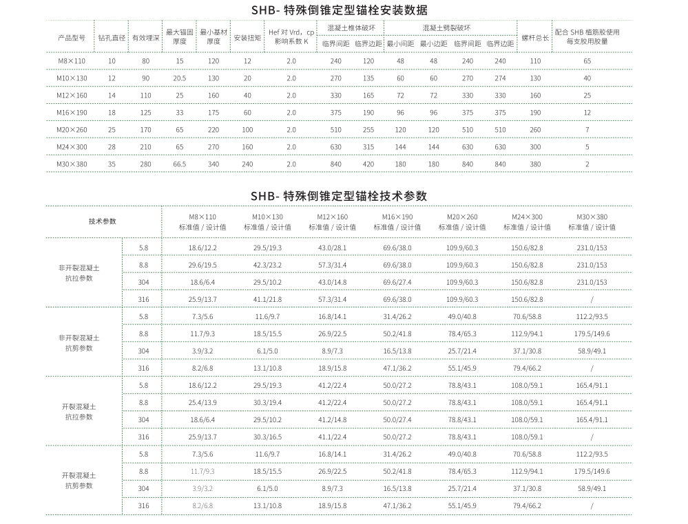 表(biǎo)格數據基(jī)於 C20/C25 基材混凝土,如基材等(děng)級變化,應遵循技術(shù)部門與設計圖紙的(de)要求,按規範追加混凝土強度影響係(xì)數;
