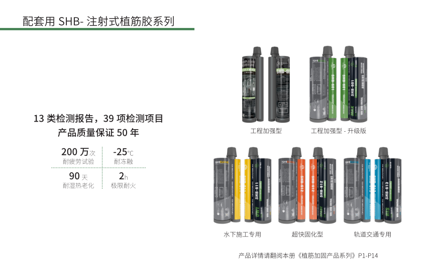 配合 SHB- 注射式植筋(jīn)膠(jiāo)使用,質量保證 50 年