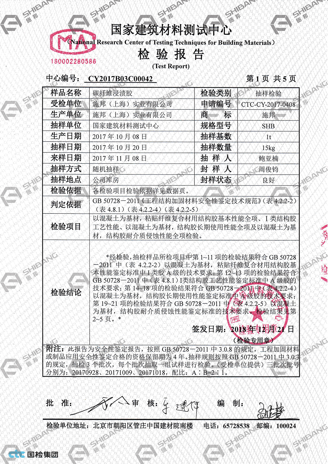 每一項都是對施邦碳(tàn)纖維(wéi)加固係(xì)列品(pǐn)質(zhì)的(de)認可